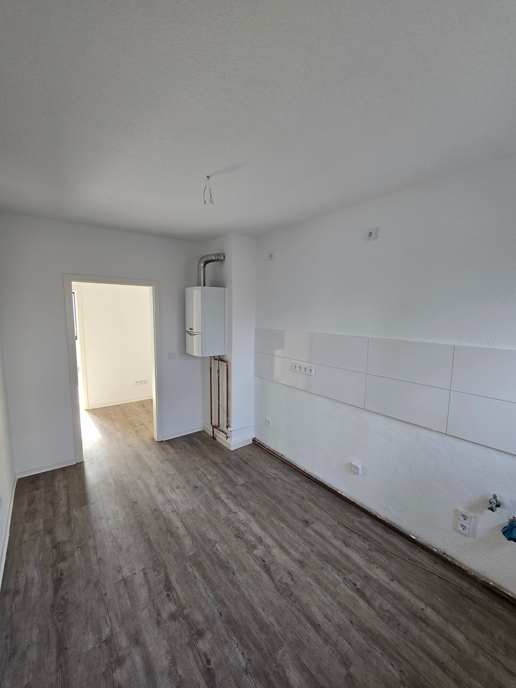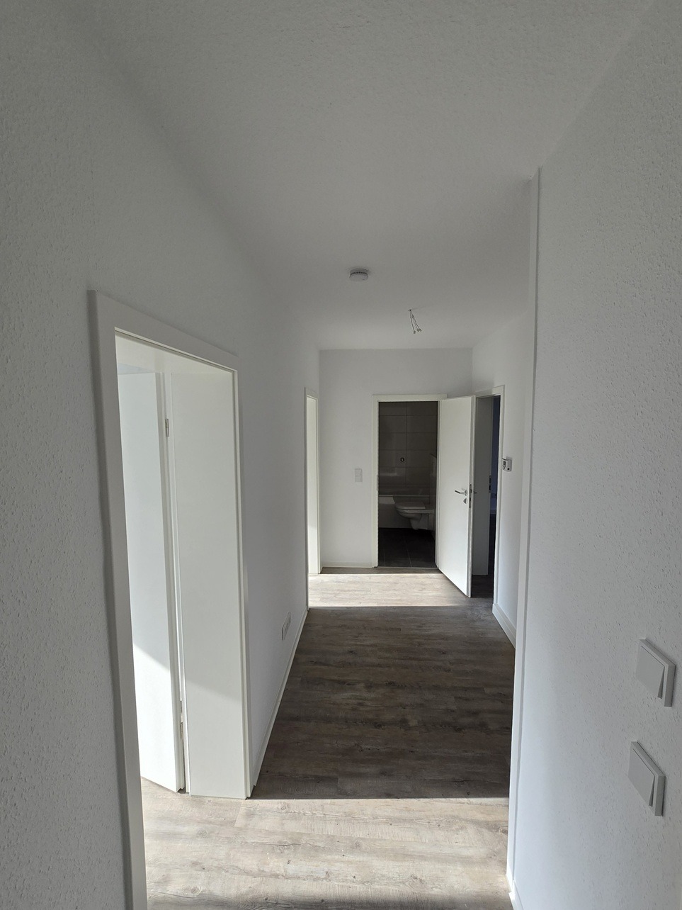 – Wände und Decken in Raufaser weiß frisch gestrichen
